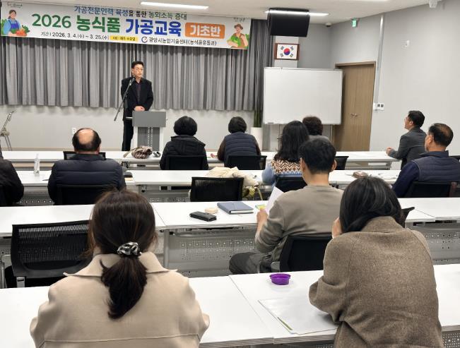 [뉴스노크=김인호 기자] 광양시는 지역 농업인의 농산물 가공 역량을 높이고 농식품 가공 창업 기반을 강화하기 위해 '2026년 농식품 가공교육 기초반'을 개강하고 본격적인 교육 운영에 들어갔다고 밝혔다.