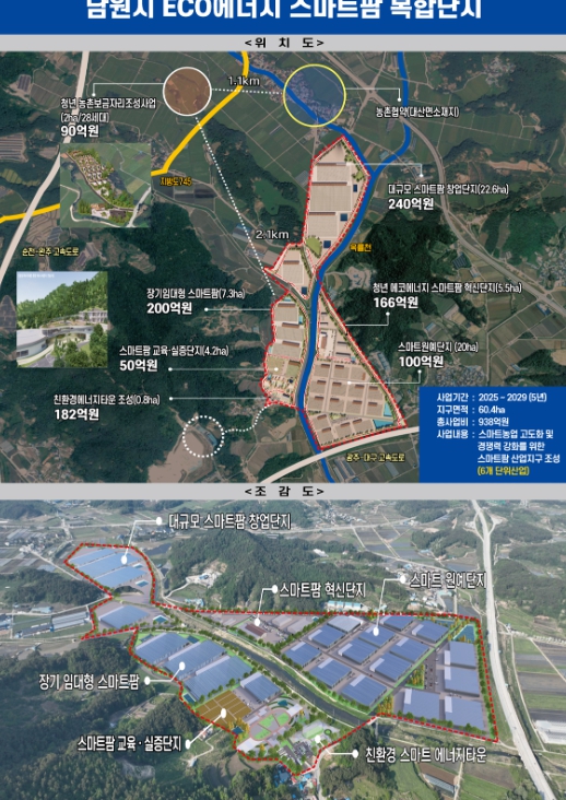 남원시는 남원시 대산면 일원에 총 60ha 규모, 총사업비 938억 원을 투입하는 대규모 국책 프로젝트인 '에코 에너지 스마트팜 복합단지' 조성을 통해 기존 농업의 한계를 뛰어넘는 혁신적인 변화를 예고했다.