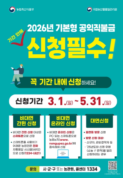 | ▲ , 2026년 기본형 공익직불금 신청·접수 |