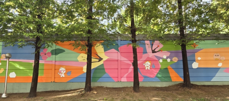 ▲ 삼산정신건강복지센터, 삼산LH 1단지 초록아파트 방음벽에 ‘힐링길 벽화그리기’ 행사 진행 |