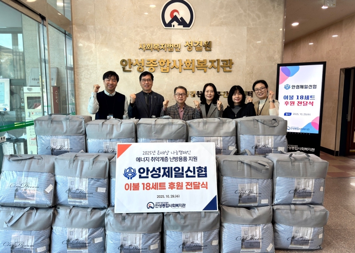 안성종합사회복지관 박희열 관장은 “지역사회의 복지 향상을 위해 함께해 주시는 안성제일신협에 깊이 감사드린다”며 “따뜻한 마음으로 전달된 이불은 도움이 필요한 이웃들에게 소중히 전달할 예정이며 모두가 훈훈한 겨울을 보낼 수 있도록 최선을 다하겠다”고 밝혔다.
