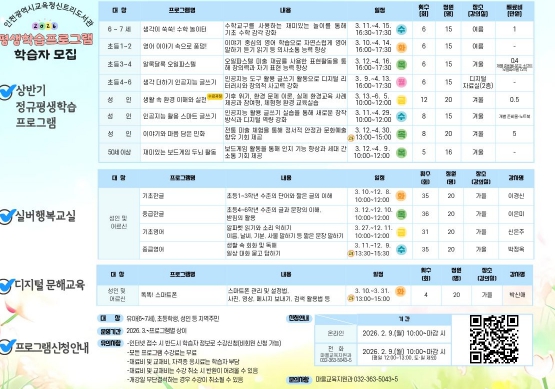 인천광역시교육청신트리도서관, 2026년 상반기 평생학습프로그램 학습자 모집