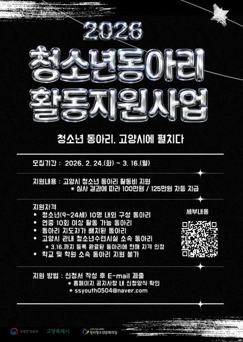 | ▲ 2026년 고양시 청소년동아리 활동지원사업 모집 안내문 |