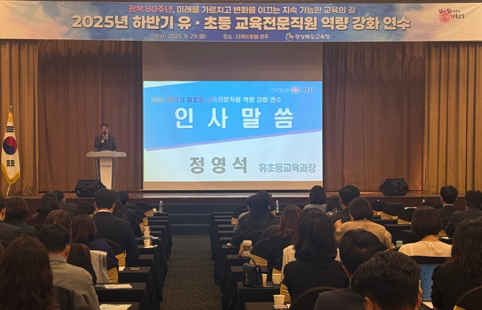 [뉴스노크=김인호 기자] 경북교육청은 29일 경주시에 있는 더케이호텔경주에서 본청과 직속기관․교육지원청 소속 유․초등 교육전문직원 160여 명이 참석한 가운데 ‘2025 하반기 유․초등 교육전문직원 역량 강화 연수’를 개최했다고 밝혔다.