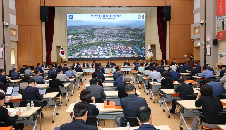 [뉴스노크=김인호 기자] 경주시는 22일 오전 시청 청사 내 알천홀에서 주낙영 시장 주재로 추석 전 마지막 확대간부회의를 열고, 한 달 앞으로 다가온 2025 APEC 정상회의의 성공적 개최를 위한 준비 상황을 점검했다.