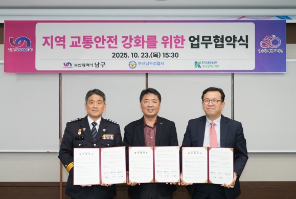 [뉴스노크=김인호 기자] 부산 남구는 지난 10월 23일, 부산 남부경찰서 및 도로교통공단 부산광역시지부와 함께‘지역 교통안전 강화를 위한 업무협약’을 체결했다고 밝혔다.