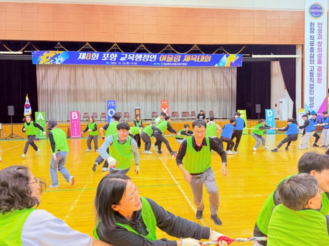 [뉴스노크=김인호 기자] 경상북도포항교육지원청은 2025. 10. 23. 오후 2시 포항대학교 평보체육관에서 제8회 포항 교육행정인 어울림 체육대회를 개최했다.