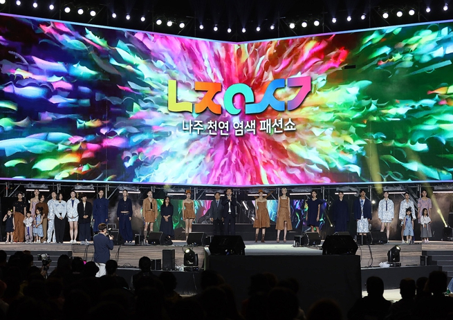 ▲ 10월 8일부터 시작하는 ‘2025 나주영산강축제’에 ‘천연염색 패션쇼’가 주무대에 오른다. 사진은 ‘2024 나주영산강축제’에서 진행한 ‘천연염색 패션쇼’ 모습. (사진 제공-나주시) |