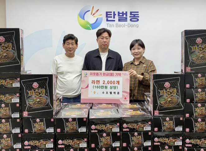 ▲ 수호텔레콤, 추석 맞아 광주시 탄벌동 취약계층에 라면 2천개 기탁 |