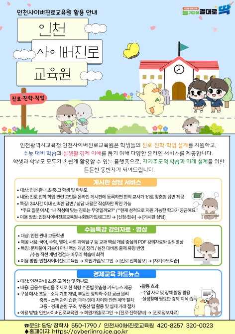 인천시교육청 관계자는 “이번 신규 콘텐츠는 경제 소양부터 대입 준비까지 학생들의 다양한 요구를 반영했다”며 “교육원 자료를 적극 활용해 자신감 있게 미래를 준비하길 바란다”고 말했다.
