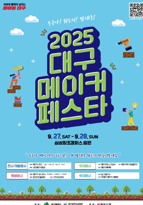 [뉴스노크=김인호 기자] 대구시교육청은 9월 27일부터 28일까지 메이커 문화 확산을 위해‘누구나! 뭐든지! 맘대로!’를 슬로건으로‘2025 대구메이커페스타(DMF)’를 대구시와 공동으로 개최한다.