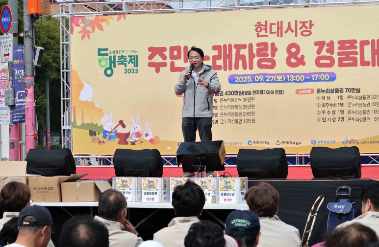 [뉴스노크=김인호 기자] 인천 동구는 지난 27일 현대시장에서 ‘현대시장 주민노래자랑&경품대잔치’를 성황리에 개최했다고 밝혔다.