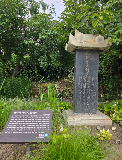 한편 전주 약령시 창립비가 옮겨간 전주역사박물관 야외전시관에는 또 다른 일제 잔재물인 ‘전주 심상소학교 정원석’(2006년 이전)과 ‘전주신사 사호석’(2014년 이전)도 함께 전시돼 있다.