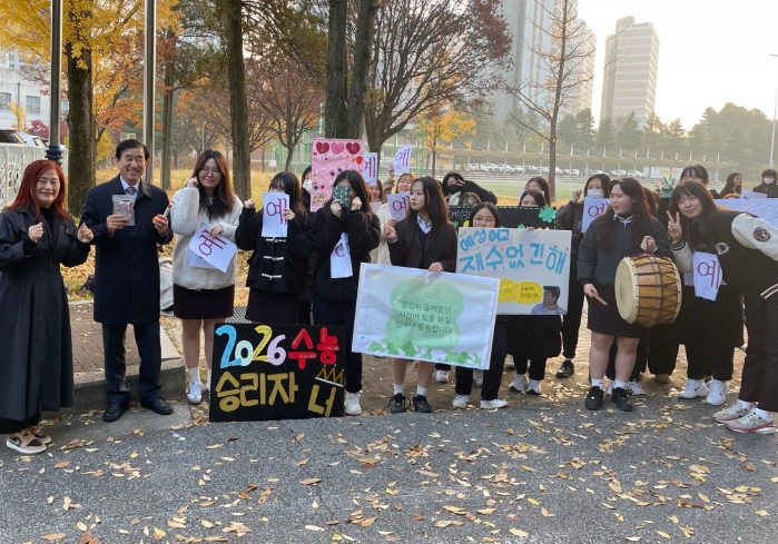 [뉴스노크=김인호 기자] 2026학년도 대학수학능력시험이 13일 오전 8시 40분부터 전국적으로 일제히 치러지는 가운데, 충주시에서도 수험생들의 합격을 기원하는 응원의 열기가 뜨겁다.