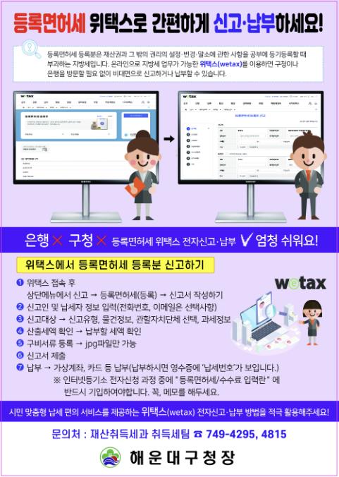| ▲ 부산 해운대구, 등록면허세 위택스 전자신고·납부 적극 안내 |