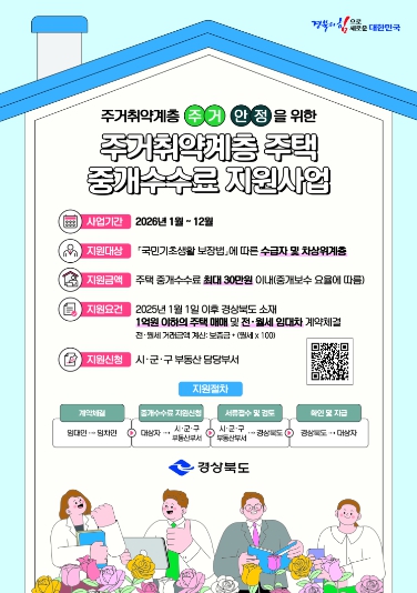 [뉴스노크=김인호 기자] 영덕군은 기초생활수급자와 차상위계층의 주거 이전에 따른 경제적 부담을 완화하기 위해 ‘주거 취약계층 주택 중개보수 지원사업’을 신청 접수한다.