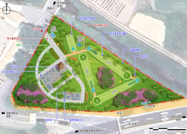 속초시는 대상지에 있는 노후 파고라, 벤치, 보도블럭 등 휴게시설을 정비하고, 소규모 파크골프 연습장을 비롯해 어르신 맞춤형 운동기구와 일반 운동기구 등 다양한 체육시설을 새롭게 설치할 예정이다. 특히 시니어 운동기구는 근력이 약한 노년층을 고려해 강도조절이 가능하며, 인지기능 향상에 도움이 되는 퍼즐형 기구도 포함돼 있다.