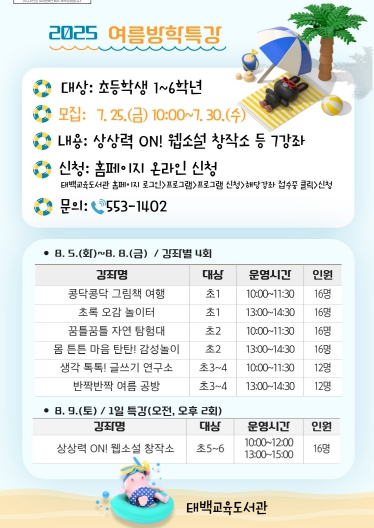 ▲ 태백교육도서관, 2025년 여름방학 특강 운영 |