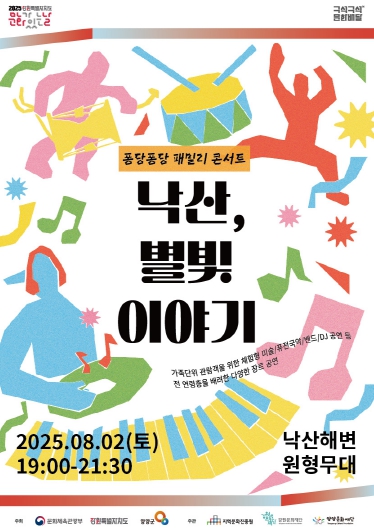 [뉴스노크=김인호 기자] (재)양양문화재단에서는 ‘2025 문화가 있는 날 – 구석구석 문화배달’ 사업의 일환으로 오는 8. 2. 19:00~21:30, '낙산, 별빛 이야기 콘서트'를 양양군 강현면 낙산해변 원형무대(강현면 해맞이길 42-2)에서 진행한다.