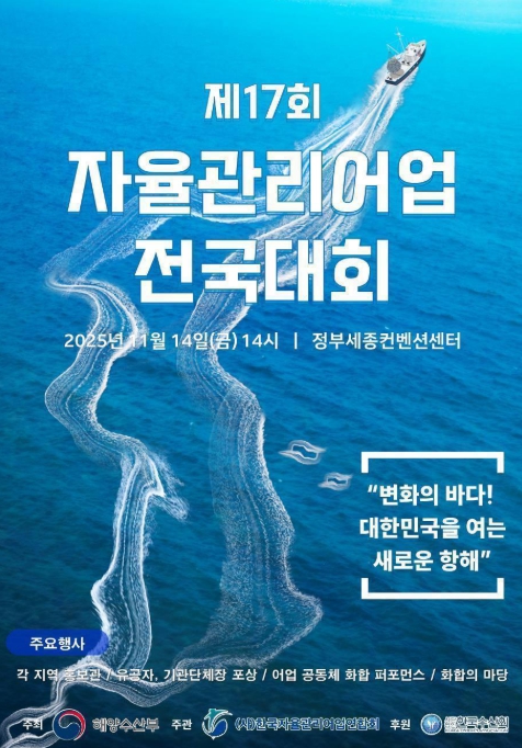 [뉴스노크=김인호 기자] 해양수산부는 11월 14일 정부세종컨벤션센터에서 ‘변화의 바다! 대한민국을 여는 새로운 항해’라는 주제로 ‘제17회 자율관리어업 전국대회’를 개최한다고 밝혔다.