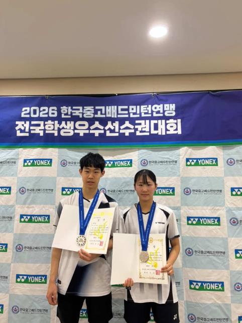 [뉴스노크=김인호 기자] 오산시 사단법인 오산스포츠클럽 소속 배드민턴 선수들이 ‘2026 한국중·고배드민턴연맹 전국학생우수선수권대회’에서 혼합복식 고등부 준우승을 차지하며 전국 무대에서 우수한 기량을 입증했다.