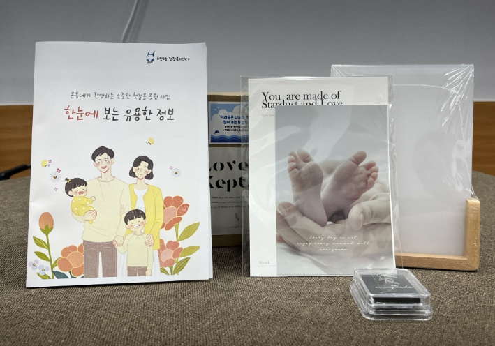 ‘발 도장 세트’에는 아기 발 도장을 남길 수 있는 안전 잉크 패드와 기념용 카드, 액자가 포함돼 있으며, ‘유용한 양육정보지’에는 첫 만남 이용권, 양육 수당, 아동수당, 보육료 정보, 달빛어린이병원 현황 등 초보 부모에게 꼭 필요한 내용이 정리돼 있다.