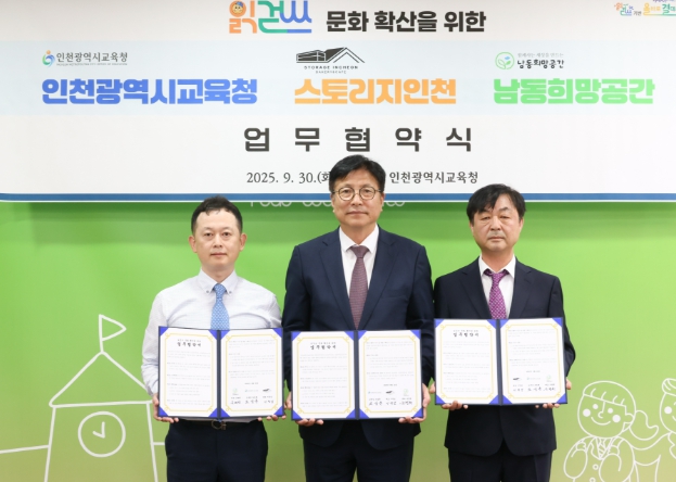 [뉴스노크=김인호 기자] 인천광역시교육청은 9월 30일 ㈜월미하이랜드(대표 이덕성) 스토리지인천, 남동희망공간(대표 유병희)과 함께 ‘읽걷쓰’ 문화 확산을 위한 업무협약을 체결했다.