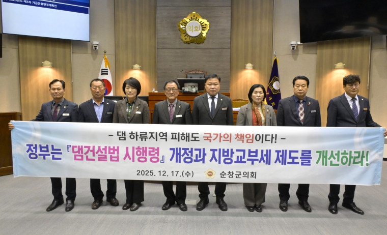 이에 순창군의회는 정부에 ▲'댐건설법 시행령'개정을 통한 댐 하류지역 지원대상 명확화 ▲사전방류 기준 강화와 방류정보 실시간 공유 등 댐 운영체계 개선 ▲지방교부세 산정 시 ‘댐 하류지역 위험부담 계수’신설을 통한 재정 지원 현실화를 강력히 촉구했다.