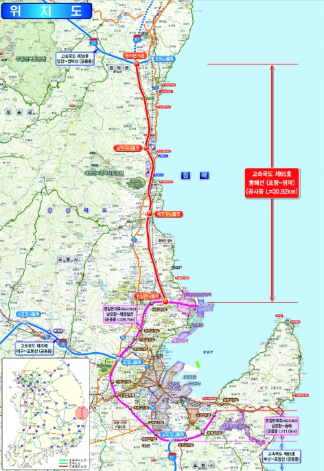[뉴스노크=김인호 기자] 국토교통부와 한국도로공사는 동해고속도로 포항–영덕 구간을 11월 8일 오전 10시 개통한다.