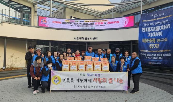 | ▲ 안성시 서운면 바르게살기위원회, 따뜻한 겨울을 위한 사랑의 쌀 나눔 |