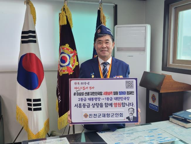[뉴스노크=김인호 기자] 최상욱 진천군재향군인회장은 진천 출신의 독립운동가 보재 이상설 선생의 서훈 승격을 염원하는 릴레이 캠페인에 동참했다고 16일밝혔다.
