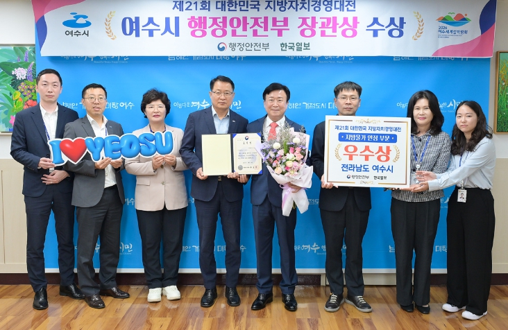 [뉴스노크=김인호 기자] 여수시가 행정안전부와 한국일보가 공동으로 주최한 ‘제21회 대한민국 지방자치경영대전’에서 ‘지방물가 안정 분야’ 우수기관으로 선정돼 행정안전부장관 표창을 수상했다.