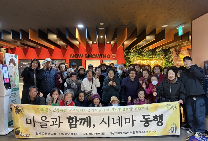[뉴스노크=김인호 기자] 강화군노인복지관(관장 윤심)이 지난 11일, 강화 작은영화관에서 개방형 경로당 문화프로그램 ‘마을과 함께, 시네마 동행’ 1차 영화 관람을 진행했다.