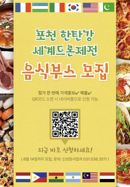 포천시 관계자는 “세계 각국의 맛과 문화를 한자리에서 즐길 수 있는 특별한 축제가 될 것”이라며 “많은 음식관이 참여해 축제의 풍성함을 더해주길 기대한다”고 말했다.