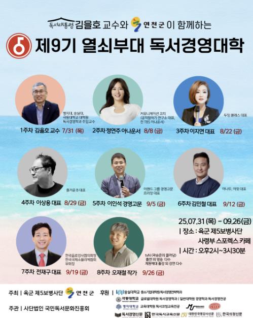연천군 관계자는 “독서경영대학은 군 장병들이 독서를 통해 지식과 통찰력을 얻고, 더 나아가 자신의 삶을 주도적으로 이끌어갈 힘을 얻는 소중한 기회가 될 것”이라며, “이번 9기 교육에도 장병들의 적극적인 참여와 성장을 기대한다”고 밝혔다.