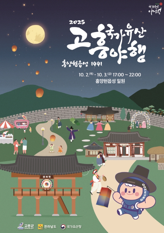 [뉴스노크=김인호 기자] 고흥군은 오는 10월 2일부터 3일까지 이틀간 고흥읍 존심당 역사문화공원(구 군청)에서 '2025년 고흥 국가유산 야행 ‘흥양현읍성 1441’'을 개최한다고 밝혔다.