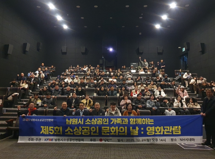 [뉴스노크=김인호 기자] 남원시소상공인연합회(회장 강상남)는 지난 21일 NH시네마에서 소상공인과 가족들을 초청해 영화 관람 행사를 열고 ‘소상공인 문화의 날’을 기념했다.