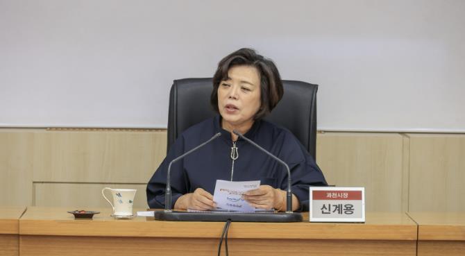 ▲ 줄타기전수교육관 건립 기본계획수립 용역 중간보고회에서 신계용 과천시장이 발언하고 있다 |
