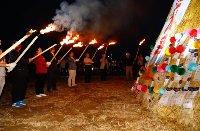 축제의 절정은 달집태우기였다. 사물놀이 공연과 폭죽으로 분위기를 띄운 뒤, 관람객들이 함께 소망을 적어 달집에 태우며 풍년과 평안을 기원했다. 모두가 한마음으로 참여한 순간, 축제는 지역 공동체의 화합을 상징하며 막을 내렸다.