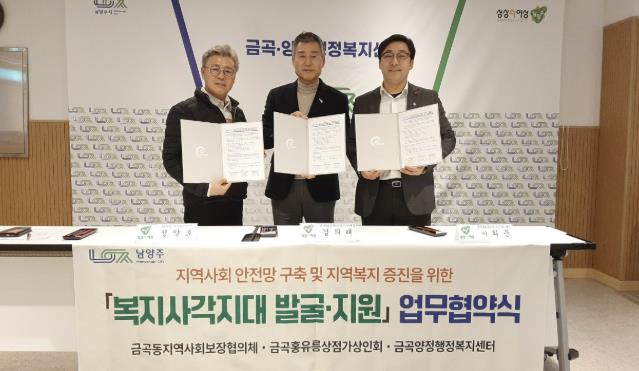 [뉴스노크=김인호 기자] 남양주시는 15일 금곡양정행정복지센터가 금곡동 지역사회보장협의체 및 금곡홍유릉상점가상인회와 함께 복지사각지대 발굴 및 취약계층 지원 강화를 위한 업무협약(MOU)을 체결했다고 밝혔다.