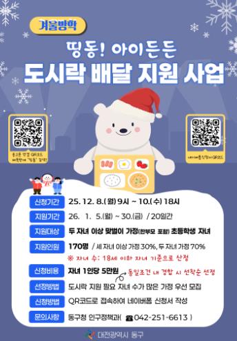 | ▲ ‘겨울방학 띵동! 아이든든 도시락 배달 지원사업’ 홍보문 |