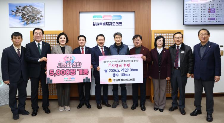 강원특별자치도의회는 매년 지속적으로 연탄 기부 등 봉사활동으로 지역사회에 온기를 더하고 있으며, 올해도 설·추석 명절 맞이 사회복지시설 위문 등을 통해 도민과 소통하고 공감하는 활발한 의정활동을 펼쳐오고 있다