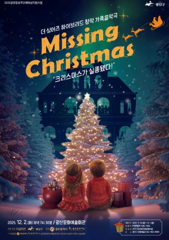 [뉴스노크=김인호 기자] 광주 광산구가 12월 2일 광산문화예술회관에서 천원문화마실 제8편 창작가족음악극 ‘Missing Christmas-크리스마스가 실종됐다!’를 선보인다.