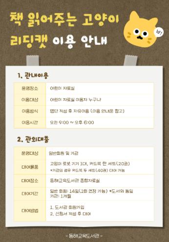 ▲ 동해교육도서관, ‘책 읽어주는 고양이 리딩캣’운영 |