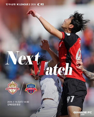 [뉴스노크=김인호 기자] 김해FC가 오는 14일 오후 2시 김해종합운동장에서 수원FC(‘수원’)를 상대로 ‘하나은행 K리그2 2026’ 3라운드 홈 경기를 치른다.