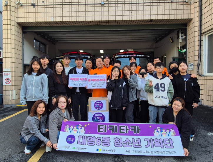 [뉴스노크=김인호 기자] 대구 남구 대명6동은 마을 청소년들이 지난 여름방학 동안 '1일 사장님' 프로그램을 통해 얻은 수익금으로 방한용 넥워머 40개와 여름용 쿨 넥워머 40개를 소방서에 기부하며, 소방의 날을 맞아 소방관들에게 감사와 응원의 마음을 전달했다고 밝혔다.