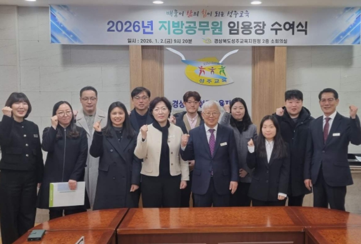 [뉴스노크=김인호 기자] 성주교육지원청은 2026년 1월 2일 청사 내 소회의실에서 지방공무원 전입자 및 신규 임용자를 대상으로 임용장 수여식을 개최했다.