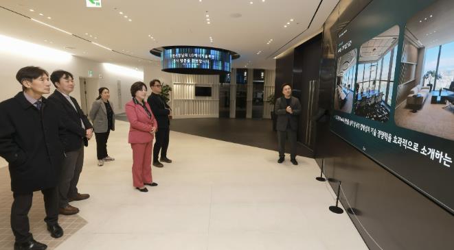 | ▲ 신계용 과천시장과 시 관계자들이 LG에너지솔루션 본사를 방문해 회사 소개를 듣고 있다. |