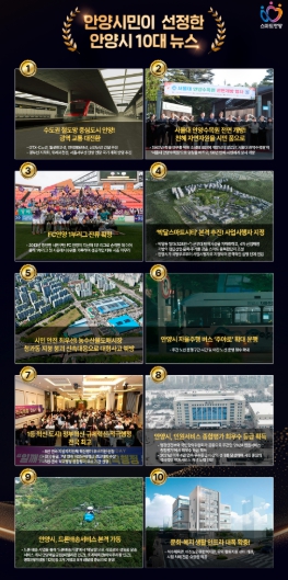 이번 10대 뉴스는 지난 12월 9일부터 15일까지 안양시 공식 블로그를 통해 진행한 온라인 시민 설문조사 결과를 바탕으로 선정됐으며, 총 1,273명의 시민이 참여했다.