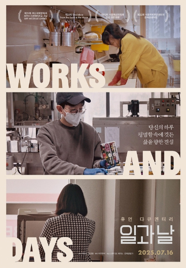[뉴스노크=김인호 기자] 제29회 부산국제영화제 최우수 다큐멘터리상(BIFF MECENAT AWARD) 수상에 이어 2025 DMZ국제다큐멘터리영화제 크리틱스 초이스 선정 등 연이은 영화제 초청 및 수상으로 뜨거운 주목을 받은 휴먼 다큐멘터리 '일과 날'이 아홉 명의 보통의 하루를 담은 스페셜 포스터 3종을 공개했다.[감독: 박민수, 안건형 | 출연: 박인수, 이승진 등 | 제작: 비우무비 | 배급: 스튜디오 에이드]